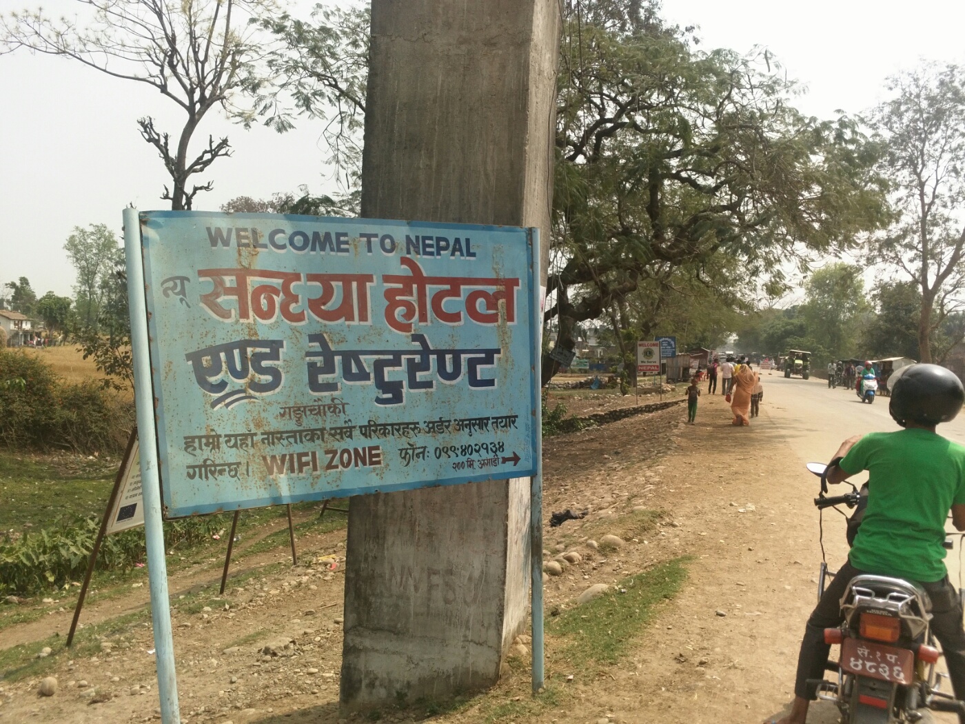 My friends of 3TAdventure found a jeep going to Haldwani, a long drive punctuated by long stops due to road work. The lowlands are very hilly, the valley offer few landing options, and I didn't see a single cumulus or thermaling bird. This validated my decision. In Haldwani I literally jumped in a bus that was going to Banbasa, but an issue with the gearbox meant that we only could reach 15km/h or so, so we had to change for another one, infested with mosquitoes. Arrived in Banbasa, an undescript town on the border, at 10pm just in time to find a hotel room and something to eat.
