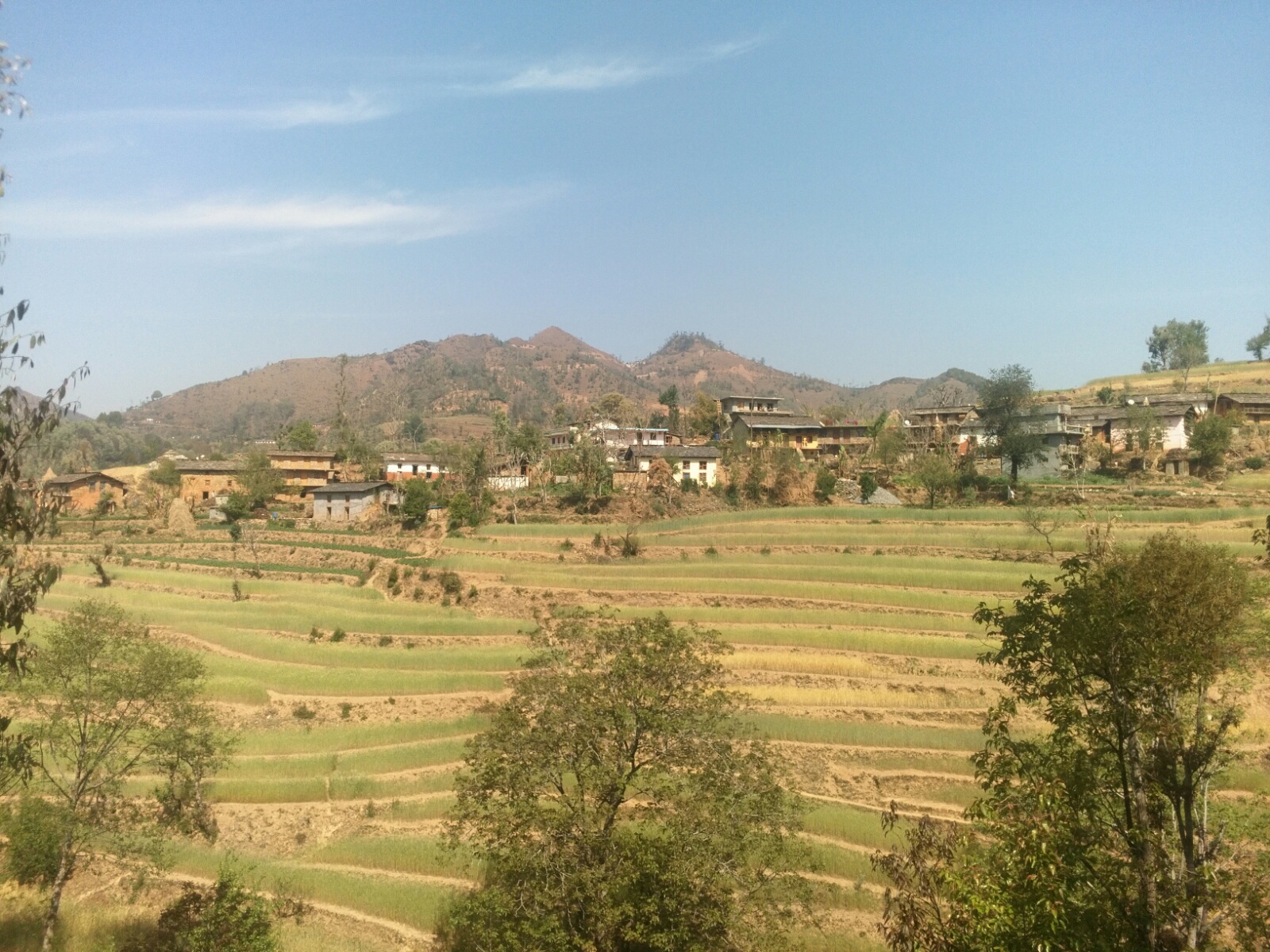 The weather was nice to me today. I was anticipating a good day, and I wanted to be in shape, so I took a jeep for a 2 hours drive that positioned me closer to take off, still a one hour hike to some wheat paddies on a ridge just above the town I spent the previous day in.