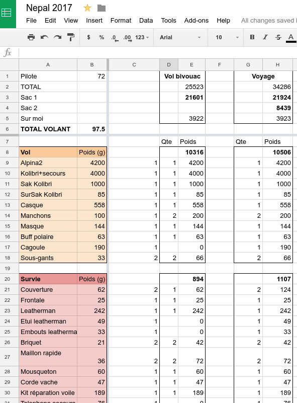 I've spent some time weighting and carefully preparing my gear for the vol-biv trip.